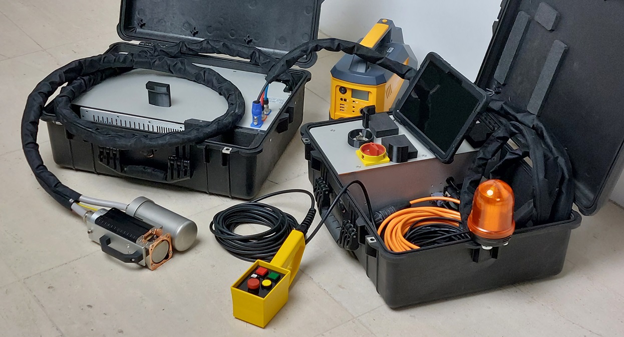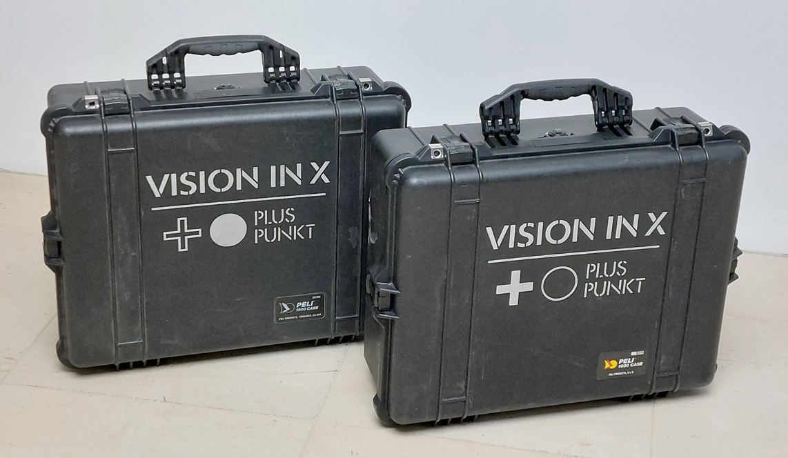 VX PlusPunkt (from german "Plus"="plus" and "Punkt"="dot") is a mobile X-ray inspection system, which is built inside two heavy-duty suitcases for safe and easy transport. A mobile power station (included) offers the best option to work anywhere, independent from house power supply. One great advantage of PlusPunkt is the small X-ray tube that fits in tight spaces, e.g. between pipes on a pipe bridge, where one would be forced to use isotopes. Compared to using isotopes, PlusPunkt's simplified handling and a narrowed control area lead to a significant productivity gain.